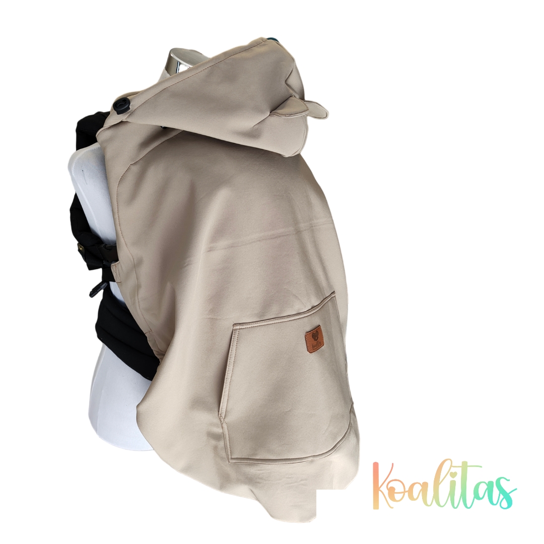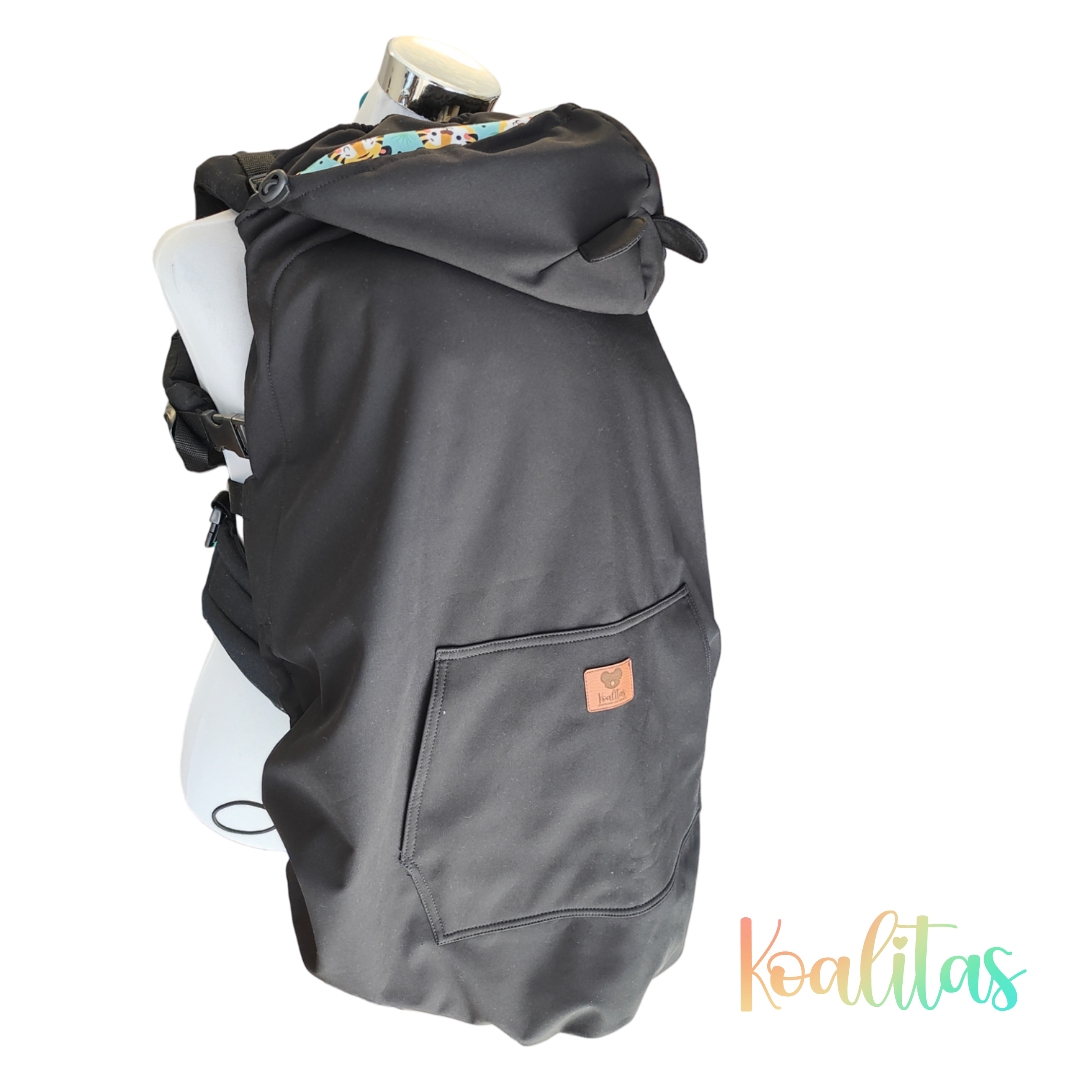 Cubre porteo impermeable con exterior repelente al agua e interior de micropolar que entrega abrigo y confort. Compatible con fulares, mei tai y mochilas ergonómicas. Ideal para portear en días fríos o lluviosos.